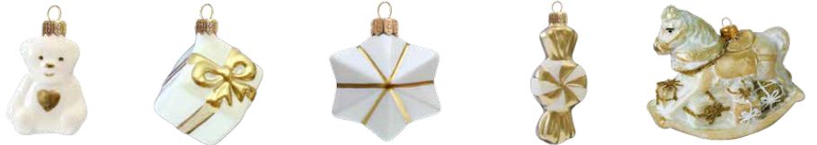 Tento set je ideální jako doplněk vašich stávajících ozdob, které stromeček přizpůsobí i vkusu vašeho nového přírůstku. Dětskou sadu 12 ozdob nabízíme v růžové a modré barvě. V neutrálnější a elegantnější zlato-bílé, která skvěle doplní například sadu ozdob z kolekce „Dotek elegance”, najdete 4 roztomilé minifigurky a většího houpacího koníka. Set můžete ještě doplnit baňkou ve stejném stylu, na kterou si můžete nechat napsat jméno vašeho drobečka. Další variantou je i bílá koule s nápisem „Moje první Vánoce”, na kterou si pro změnu můžete nechat na přání zvěčnit datum narození.
