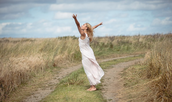 Paže s rozevřenými dlaněmi obrácenými vzhůru rozpažte doširoka a zakloňte hlavu tak, aby se rozšířil váš hrudní koš. Nosem se zhluboka nadechněte do břicha. Při výdechu si v duchu řekněte slovo „klid“. Opakujte pětkrát až desetkrát. Pravidelné řízené dýchání zklidňuje a vitalizuje celý organismus díky extra porcím kyslíku navíc.